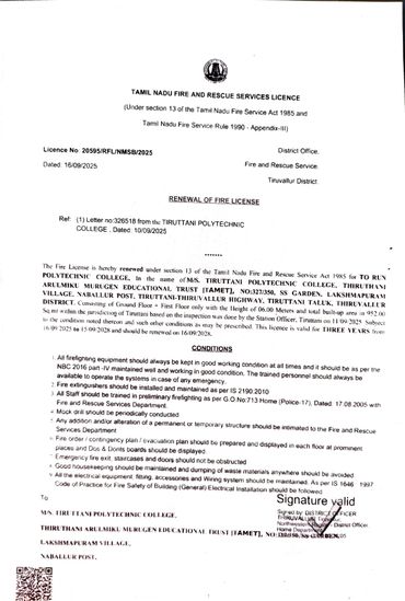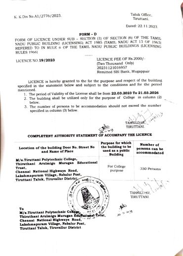 Tiruttani Polytechnic College, 327/350 SS Garden Lakshmapuram Village, Naballure Post ,Thiruttani, Tamil Nadu, India