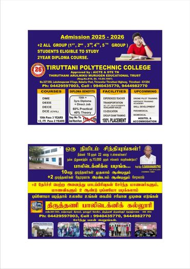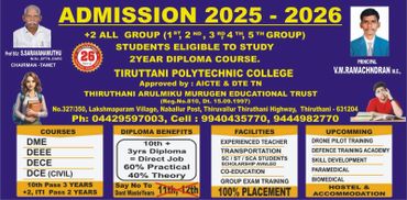 Tiruttani Polytechnic College, 327/350 SS Garden Lakshmapuram Village, Naballure Post ,Thiruttani, Tamil Nadu, India